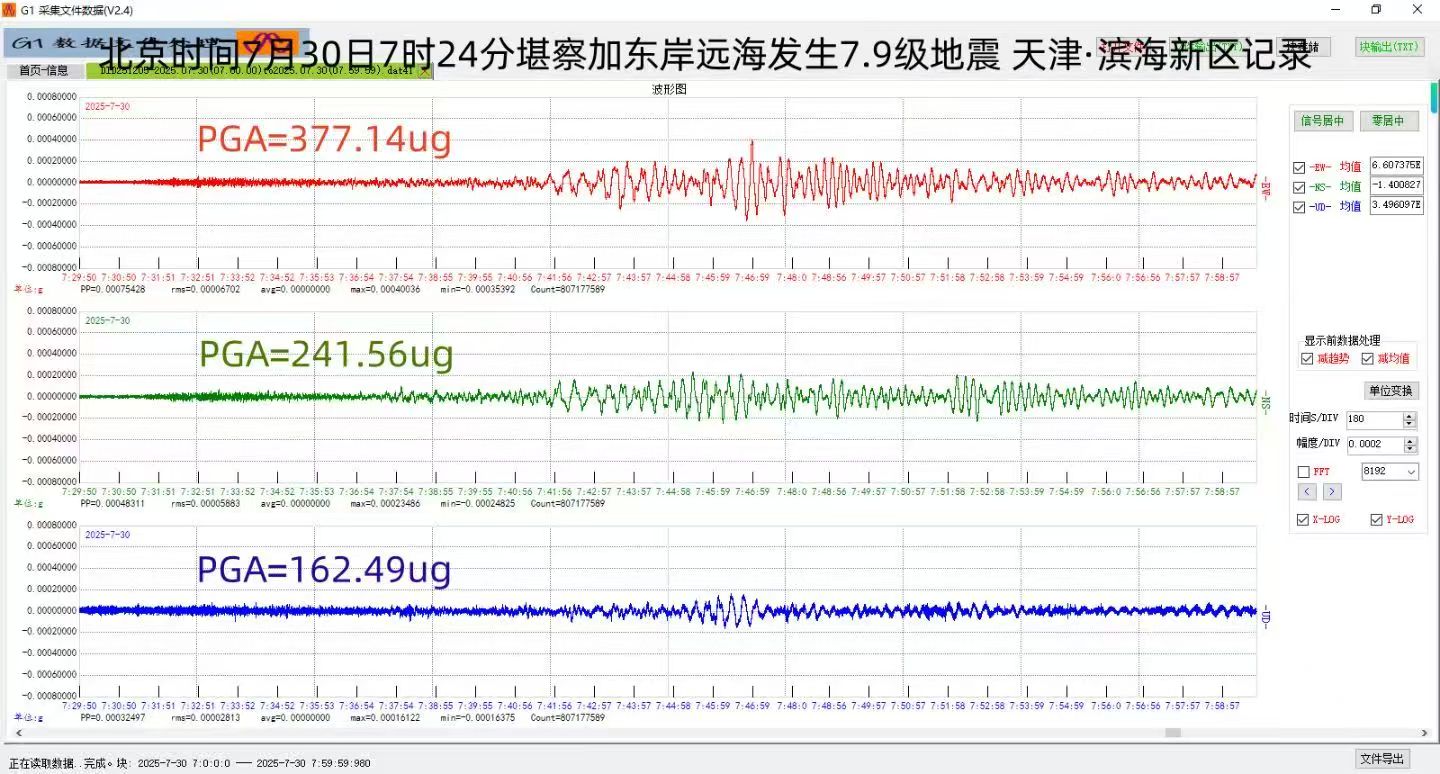 此次地震的监测数据由部署在天津滨海新区的监测点采集记录