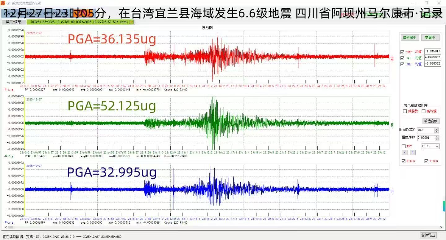 2025年12月27日23时05分在台湾宜兰县海域发生6.6级地震。